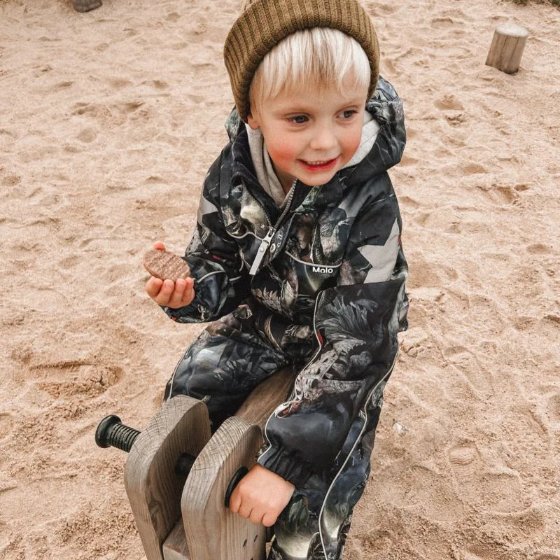 Det er en lidt dyr flyverdragt, men jeg synes kvaliteten følger med. Flyverdragter fra Molo har holdt flere sæsoner og til flere børn herhjemme. Et fantastisk valg og børnene elsker designet.
