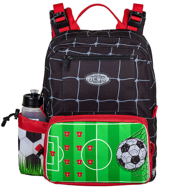 Ryggen er polstret med skum og har behagelige skulderstoppe. Tasken er en smule bred, så har du et smalt eller spinkelt barn, vil jeg anbefale Beckmann eller Ergobag i stedet, hvor tasken sidder mere fast og ergonomisk til. Jeva tasken har en fast bund, så tasken nemmere kan stå selv samt en idrætstaske, som nemt kan sættes udenpå tasken med velcrostropper.