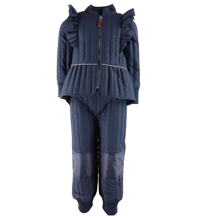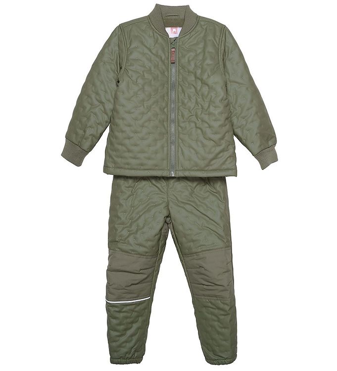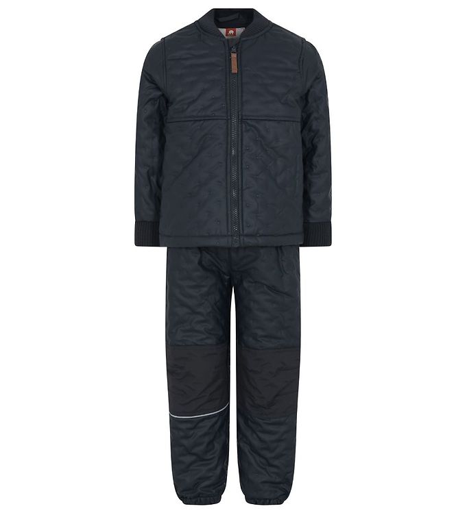 Termosættet fra Steenholt har reflekser, regulerbar linning samt forstækninger på knæ og bagdel, som de fleste andre termosæt.
